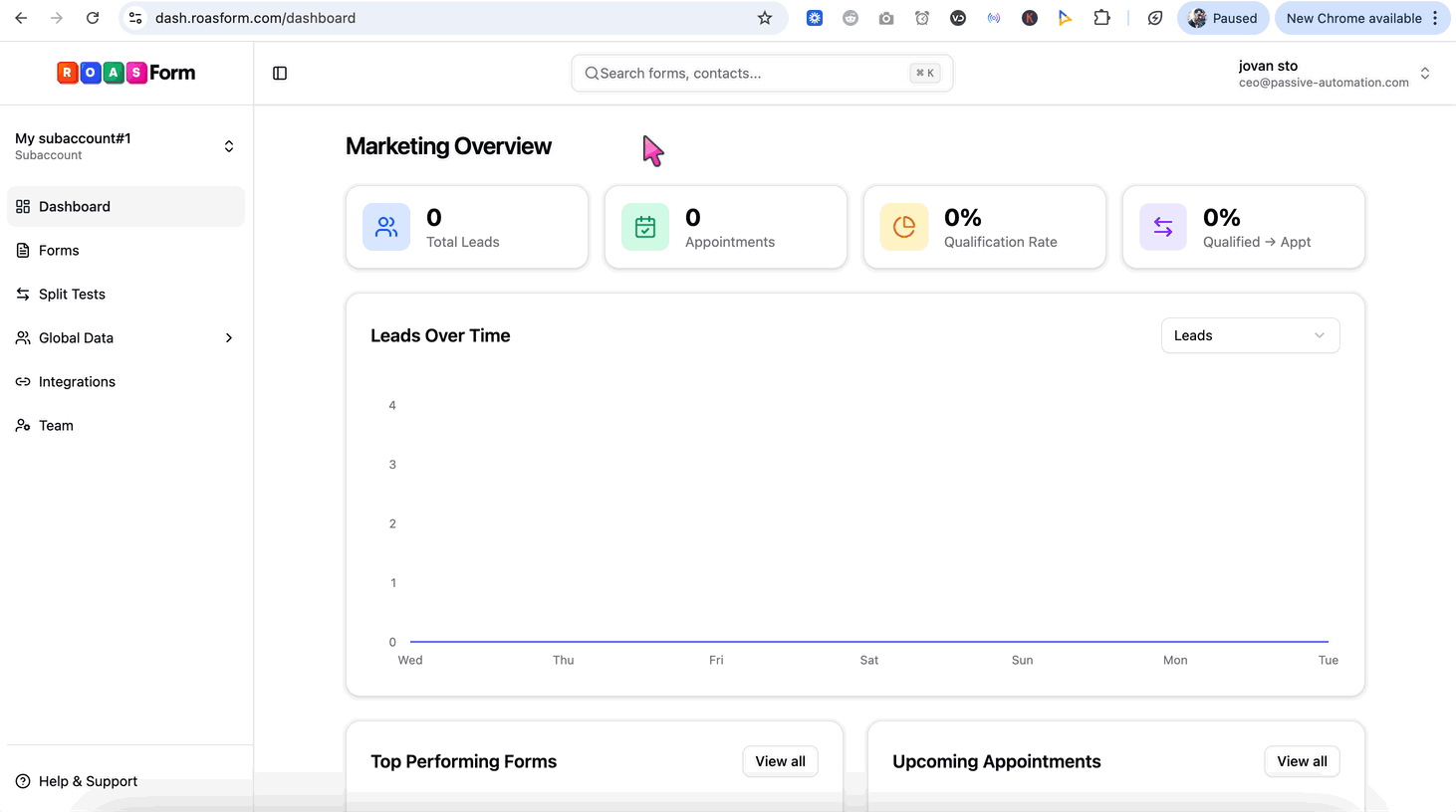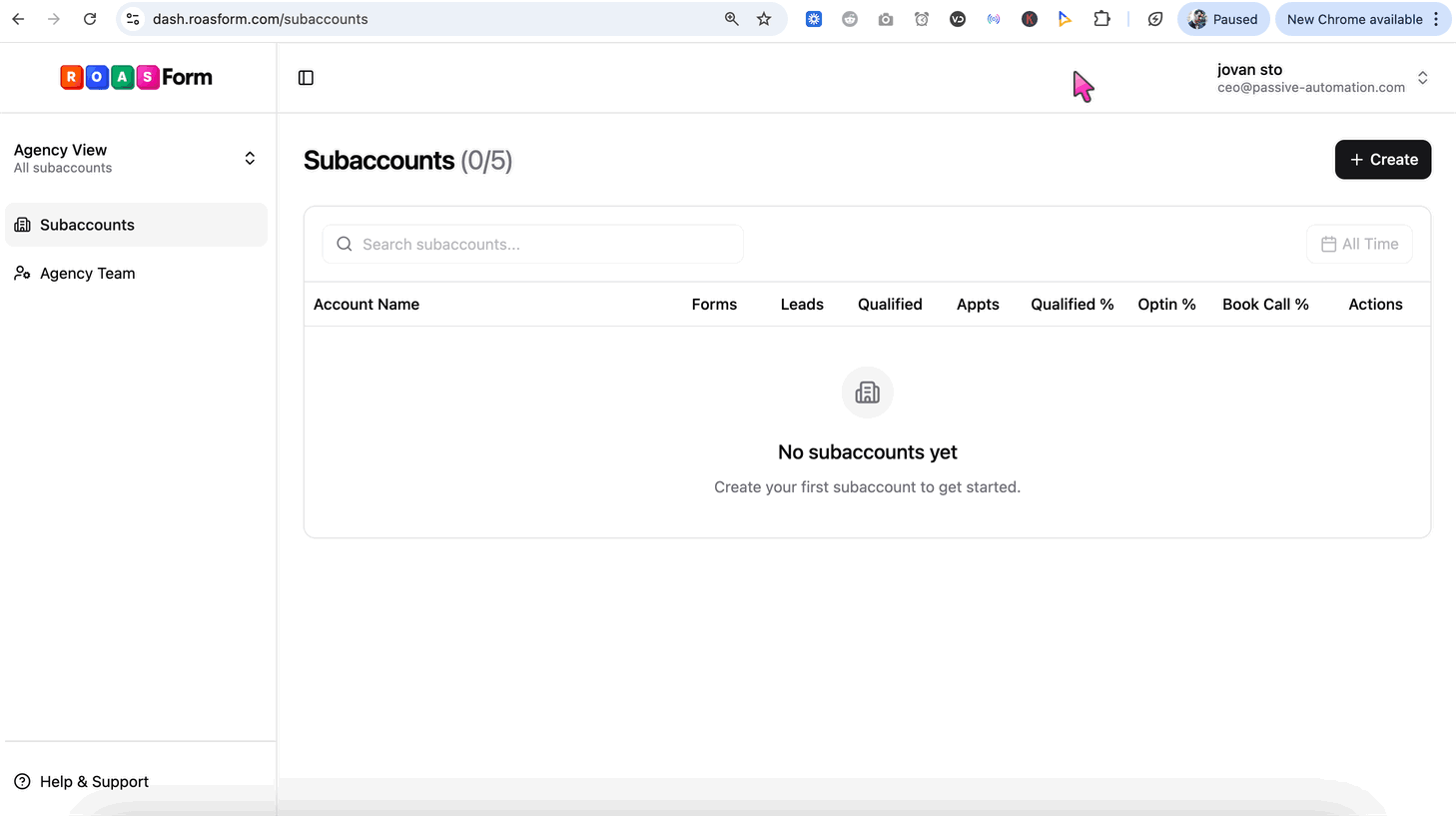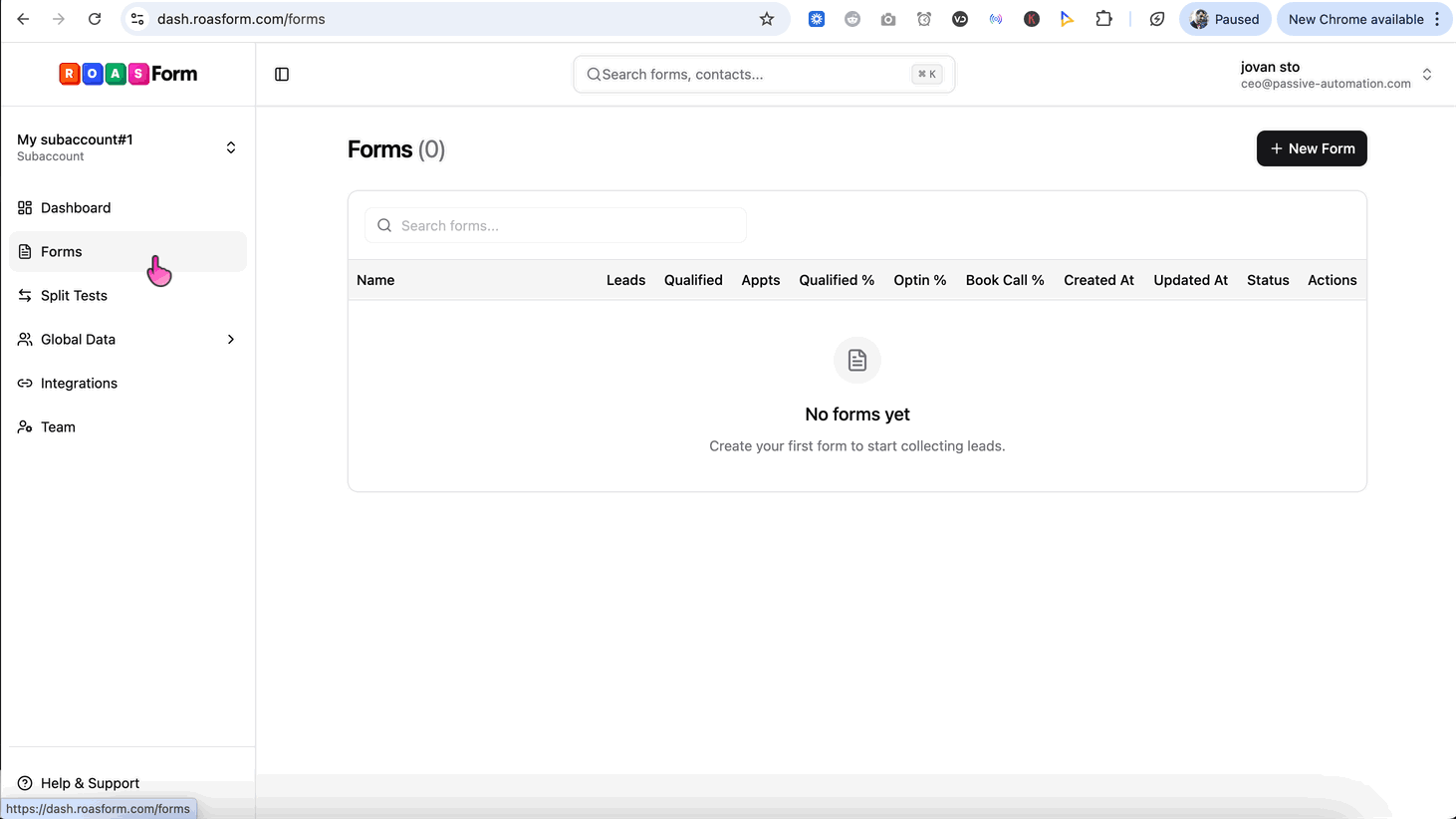 One ROASForm sub-account can only be connected to one GoHighLevel sub-accountConnecting your GoHighLevel will allow you to automatically push leads and their data straight into GoHighLevel.