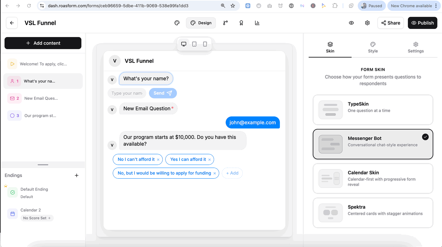 Add conditional logic so that based on the answers provided, you qualify/disqualify them and they reach the appropriate Ending path.